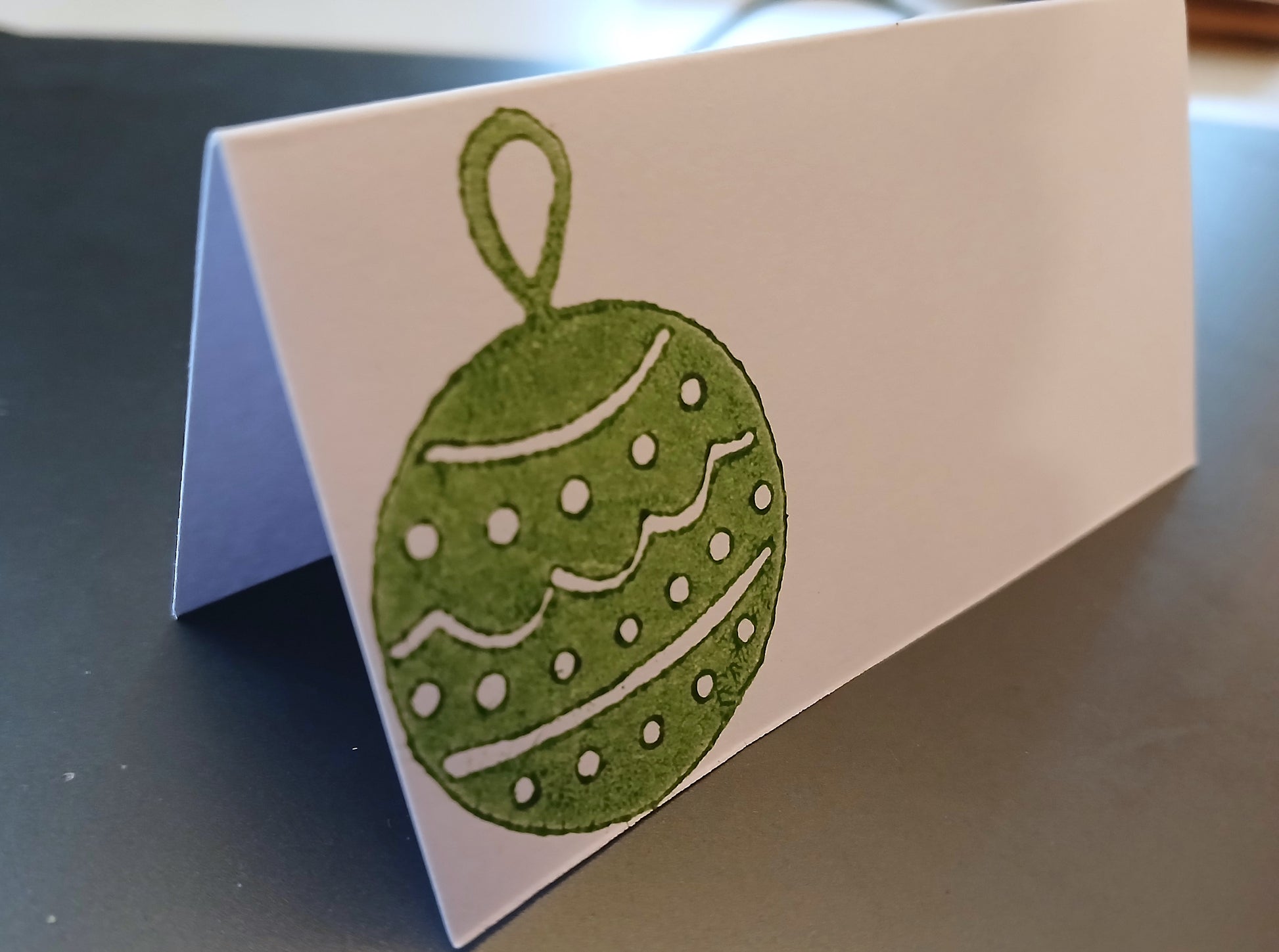 Christmas Bauble in green on rectangle white place card