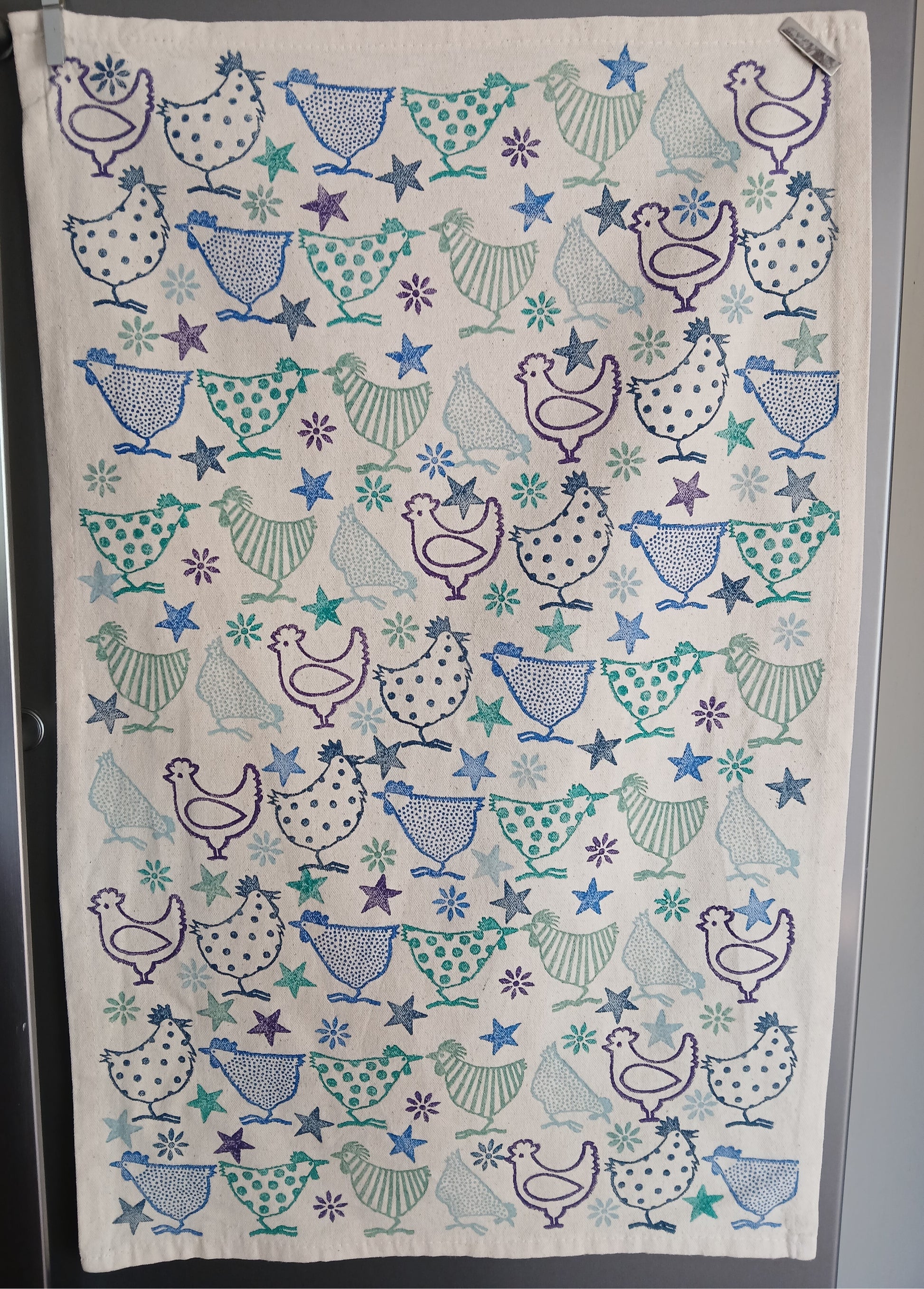 Pure white tea towel / Include stars & flowers / Mixed: Purple to Pale Blue £12.50/ea |