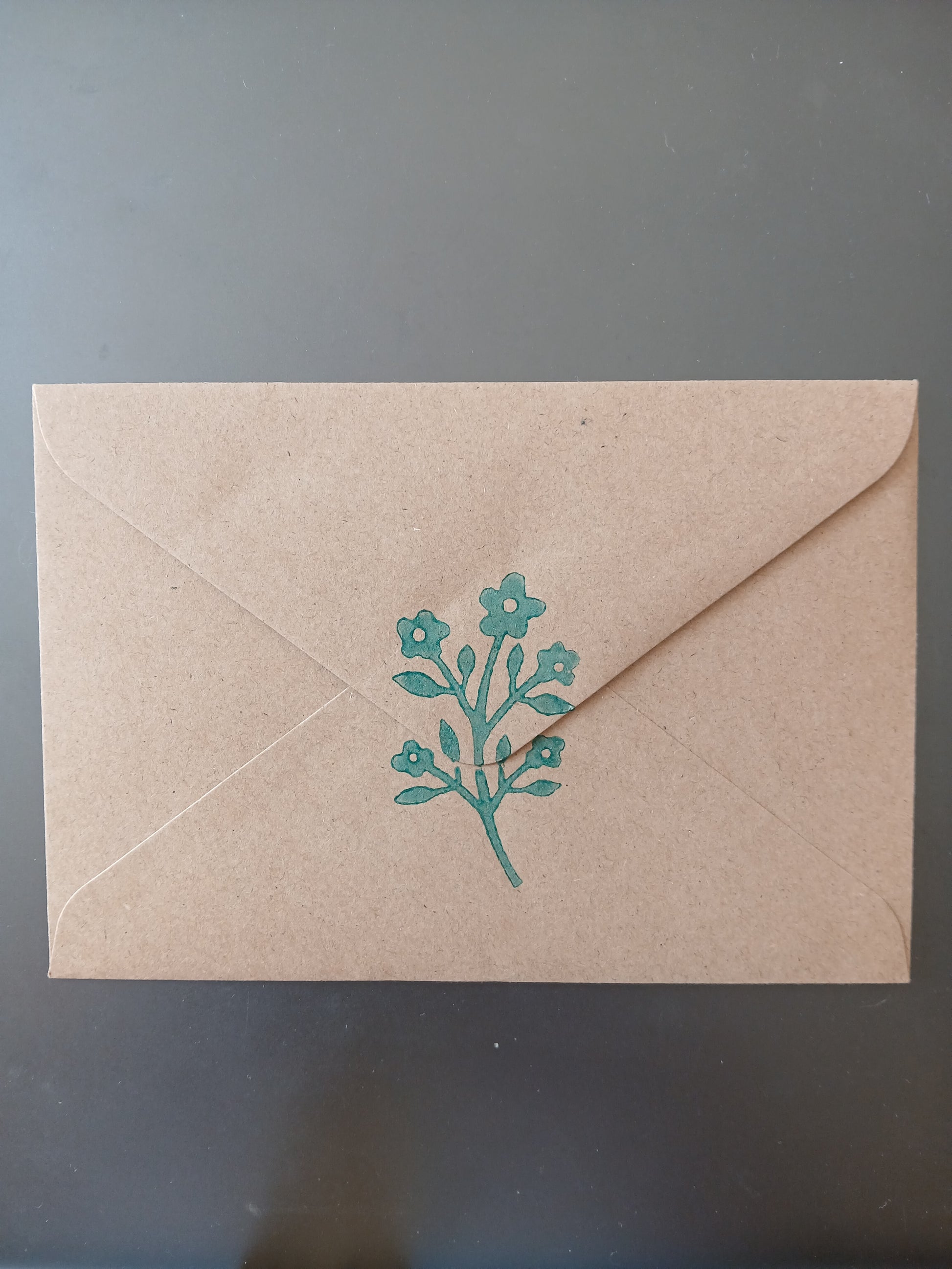 Flower Bunch in Teal on brown notelet