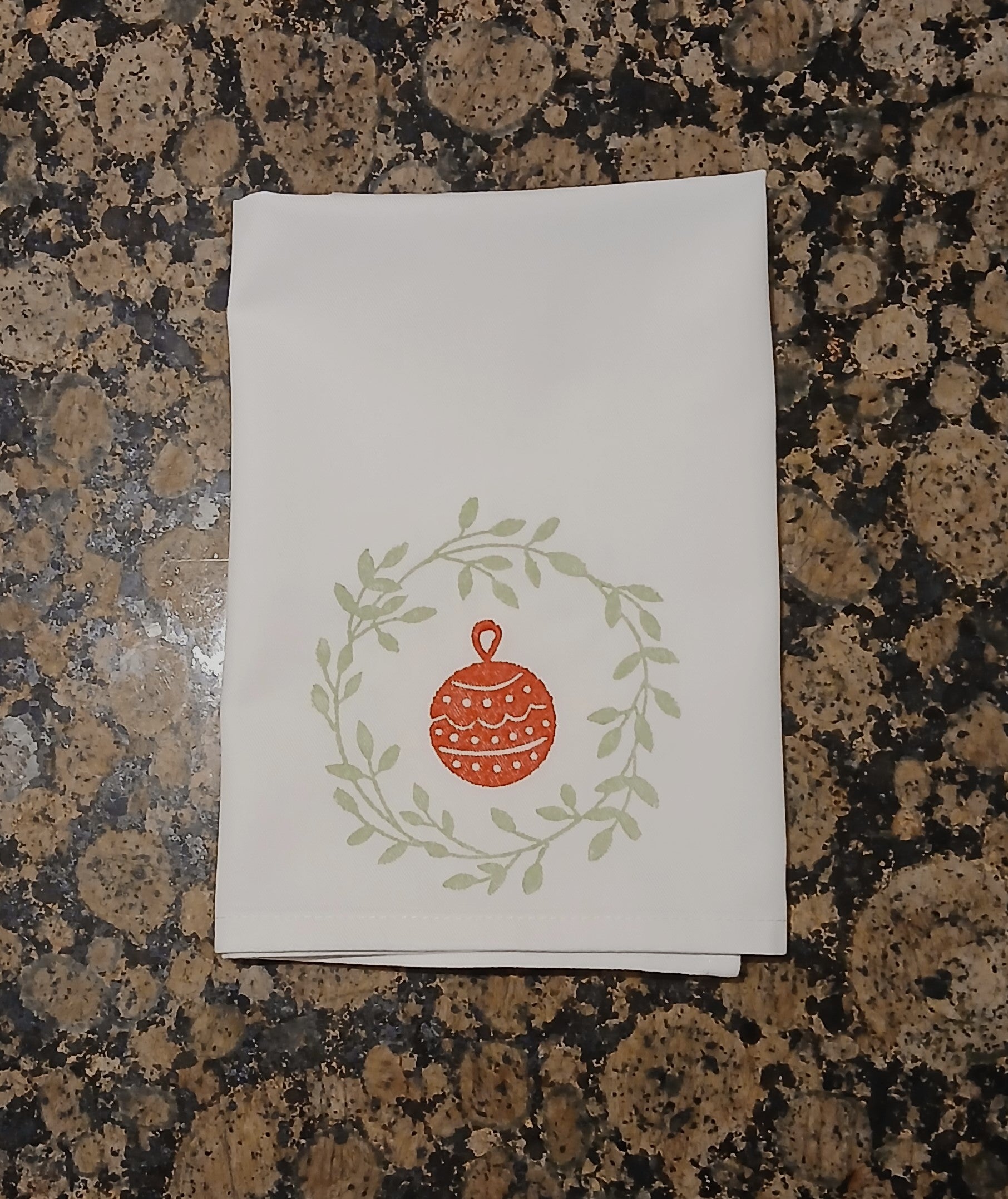Christmas Wreaths on white cotton napkin